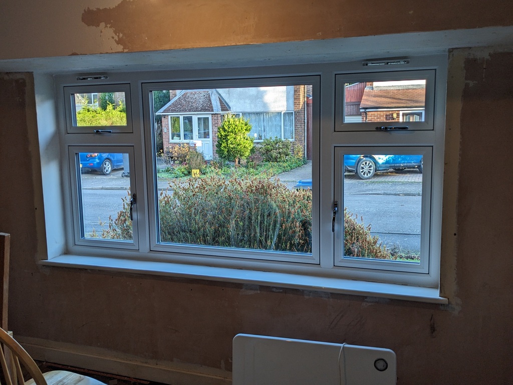 The fitters came and installed the new windows and door over the course of two days. They were excellent, taking their time to do a proper job. They did their own quality assurance as they went, replacing a scuffed pane and re-fitting the internal beading where it had been cut inaccurately – before I needed to mention it. The place was left clean and tidy after they finished their work.